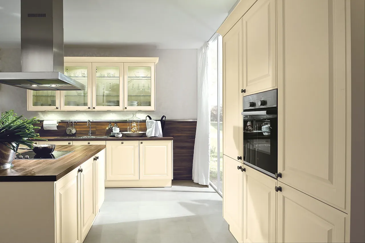- Płytki ceramiczne Paradyż w kolorze Beżowym – idealne do małych kuchni, odbijają światło i dodają ciepła.